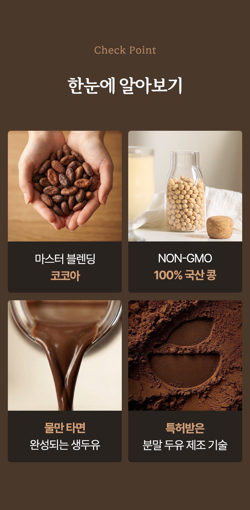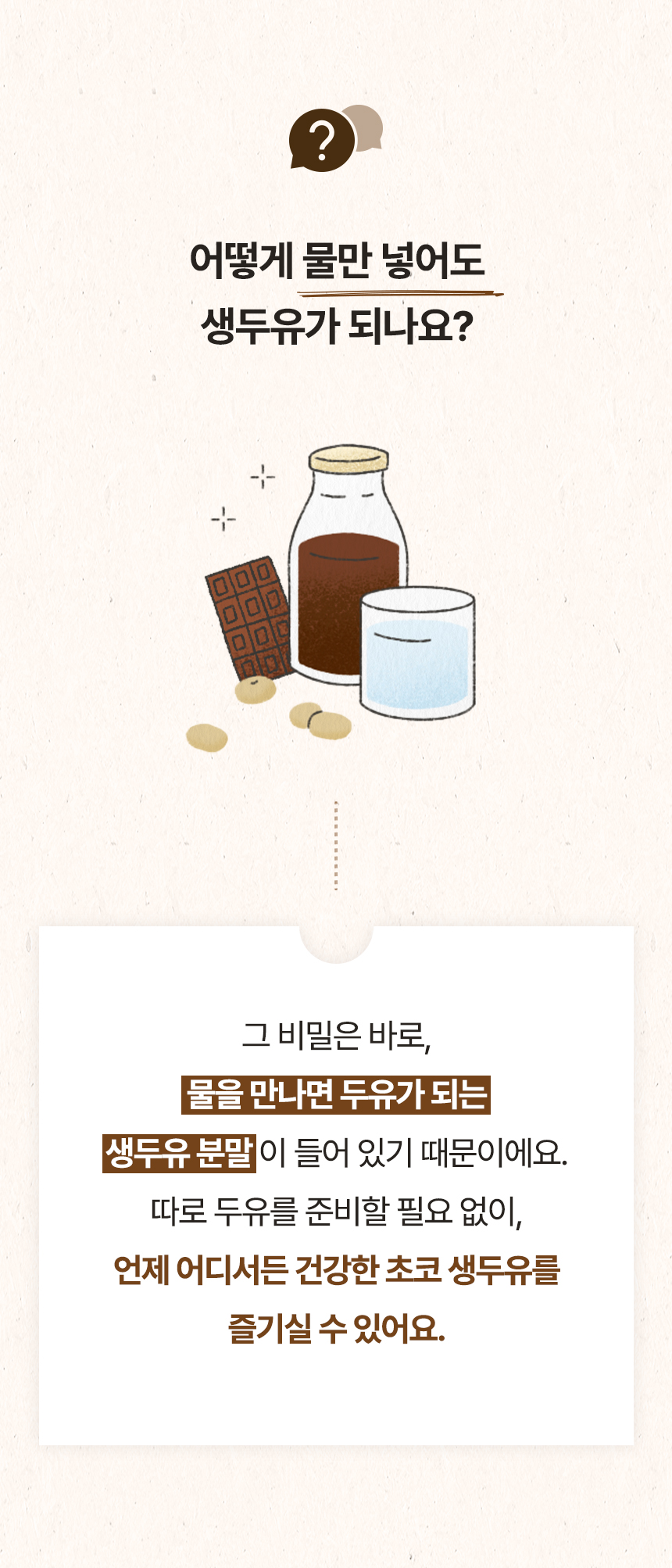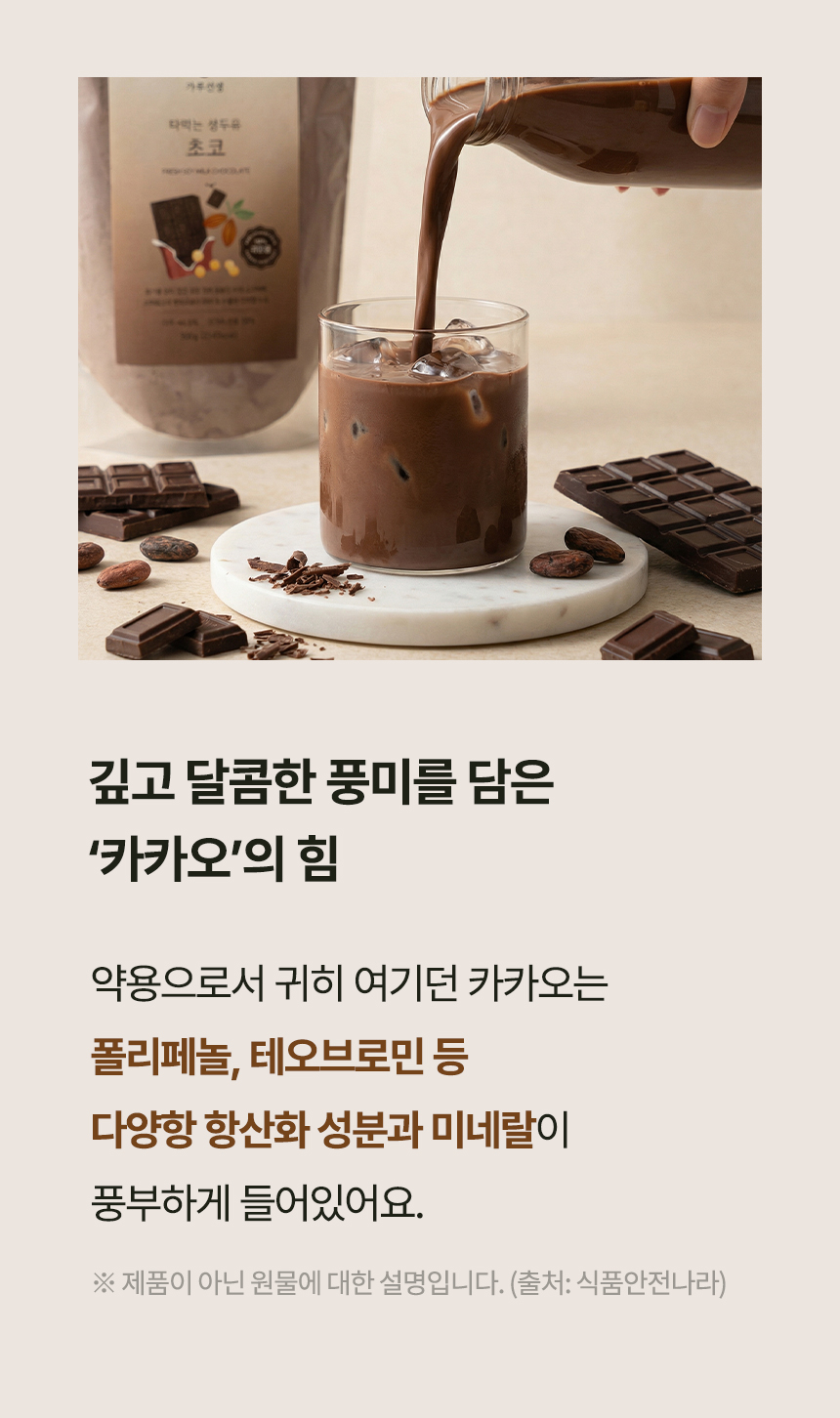 코코아의 자연스러운 달콤함과 콩의 고소함이 부드럽게 어우러진 초코두유.