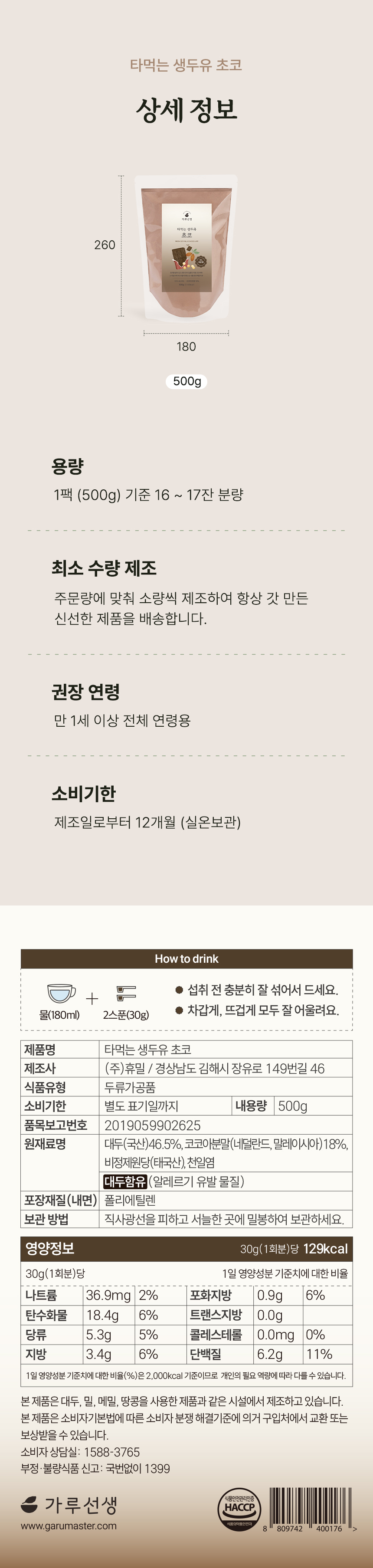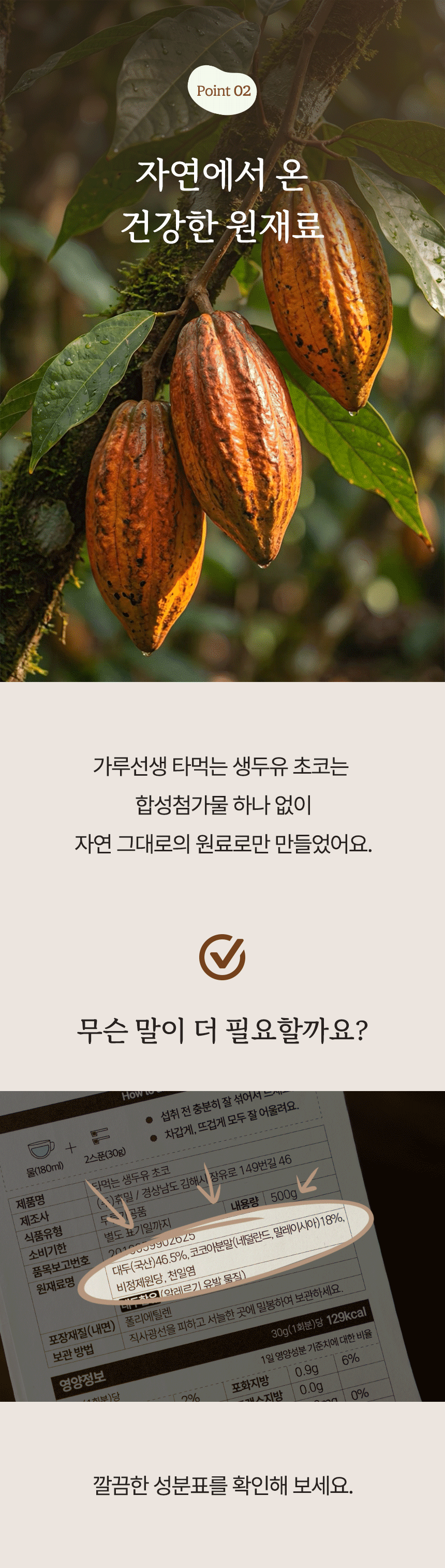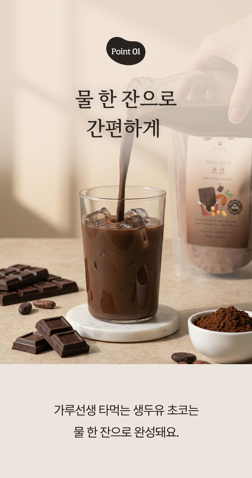 코코아의 자연스러운 달콤함과 콩의 고소함이 부드럽게 어우러진 초코두유.